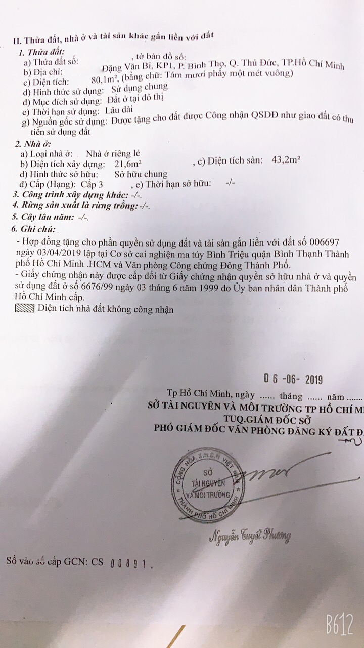 Nhà 1 lầu hẻm 3m đường Võ Văn Ngân, Trường Thọ, Thủ Đức Dt 52m ngang 5.2m Hướng: Nam Gía: 4.95 tỷ